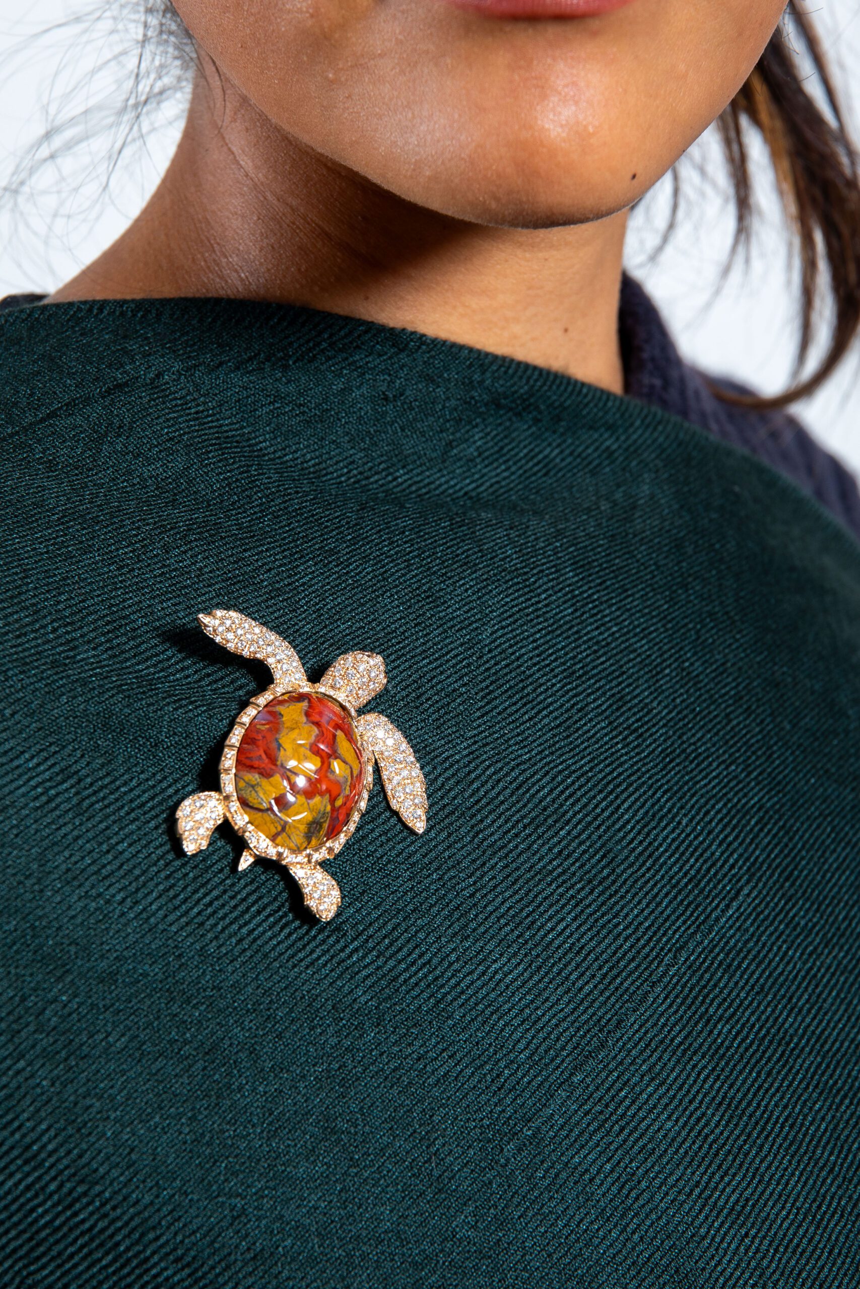 Gold (g): 23.80 Diamonds (ct): 2.90 Hard stone shell “Jasper”